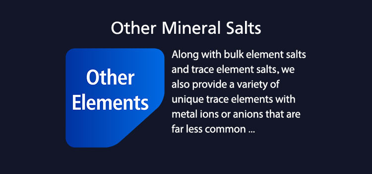 Mineral Salts are applicable in a wide range of industries. We produce products with diverse applications using high technology and severe quailty assurance procedures. Check our products based on their application: